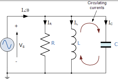 甲并联谐振电路中电感器和电容器的电场的磁场存储电路的能量。该能量不断地在电感器和电容器之间来回传递,这导致从电源汲取零电流和能量。