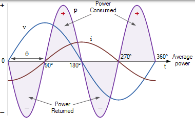 在 0 的角度之间的电压波形的正半o 和 90o,无论是电流和电压波形是在产生正功率值正被消耗。在 90o 和 180o 之间,电容器电流为负,电源电压仍然为正。因此,伏安产品给出负功率,负值乘以正值等于负值。该负功率表示线圈将存储的电能返回到电源。