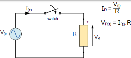 任何理想的基本電路元件,如電阻器,都可以在電壓和電流方面進行數學描述,在關於電阻器的教程中,我們看到純歐姆電阻器兩端的電壓與流過它的電流成線性比例,如下所示:歐姆定律。考慮下面的電路。