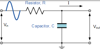 簡單的無源 RC 低通濾波器或 LPF 可以通過將單個電阻器與單個電容器串聯在一起而輕鬆製作,如下所示。在這種型別的濾波器佈置中,輸入訊號(VIN )被施加到串聯組合(電阻器和電容器一起),但輸出訊號(VOUT )僅在電容器上。